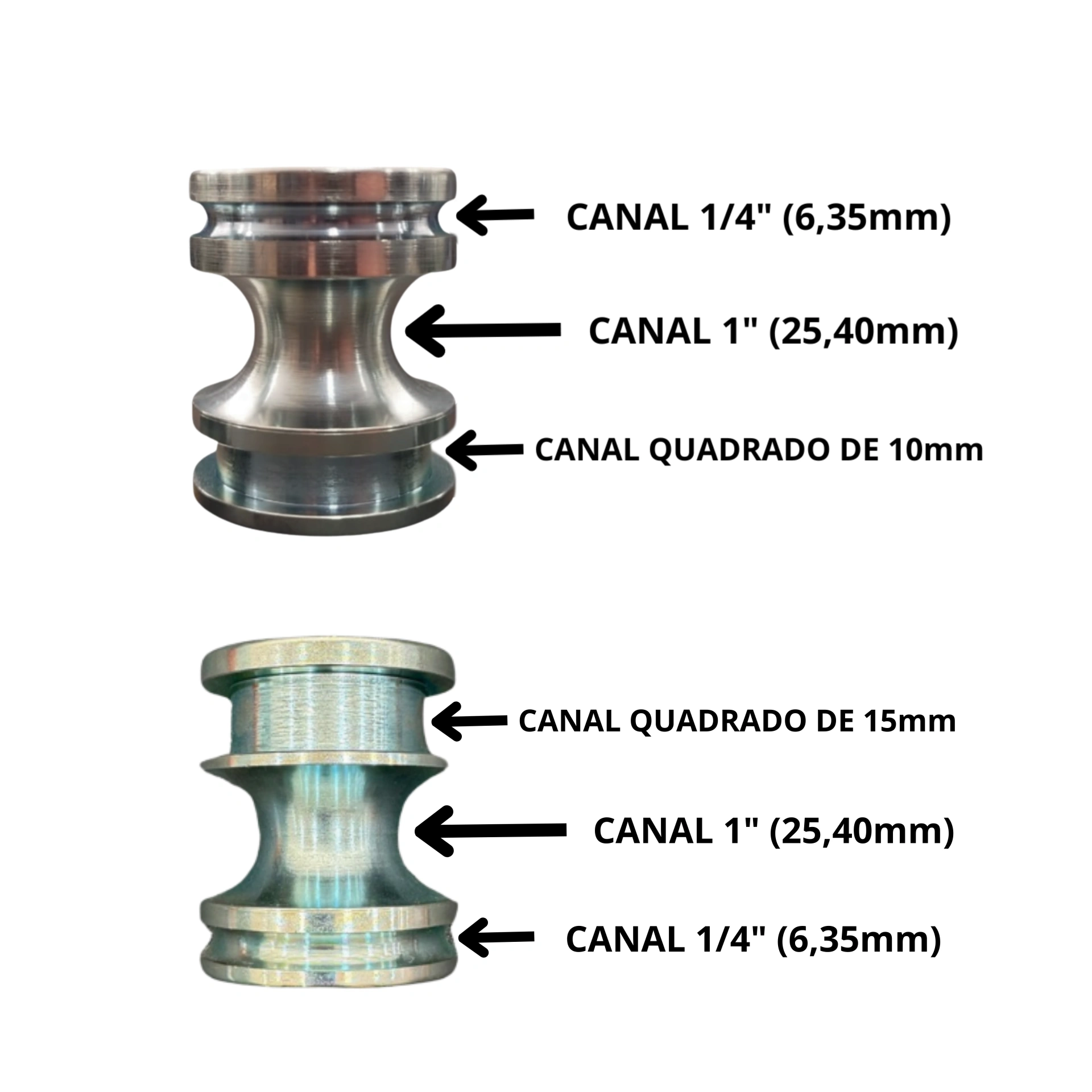 Canal U Conjugado — Medida 1/4″ (6,35mm) e 1″ (25,40mm) e Quadrado 10mm