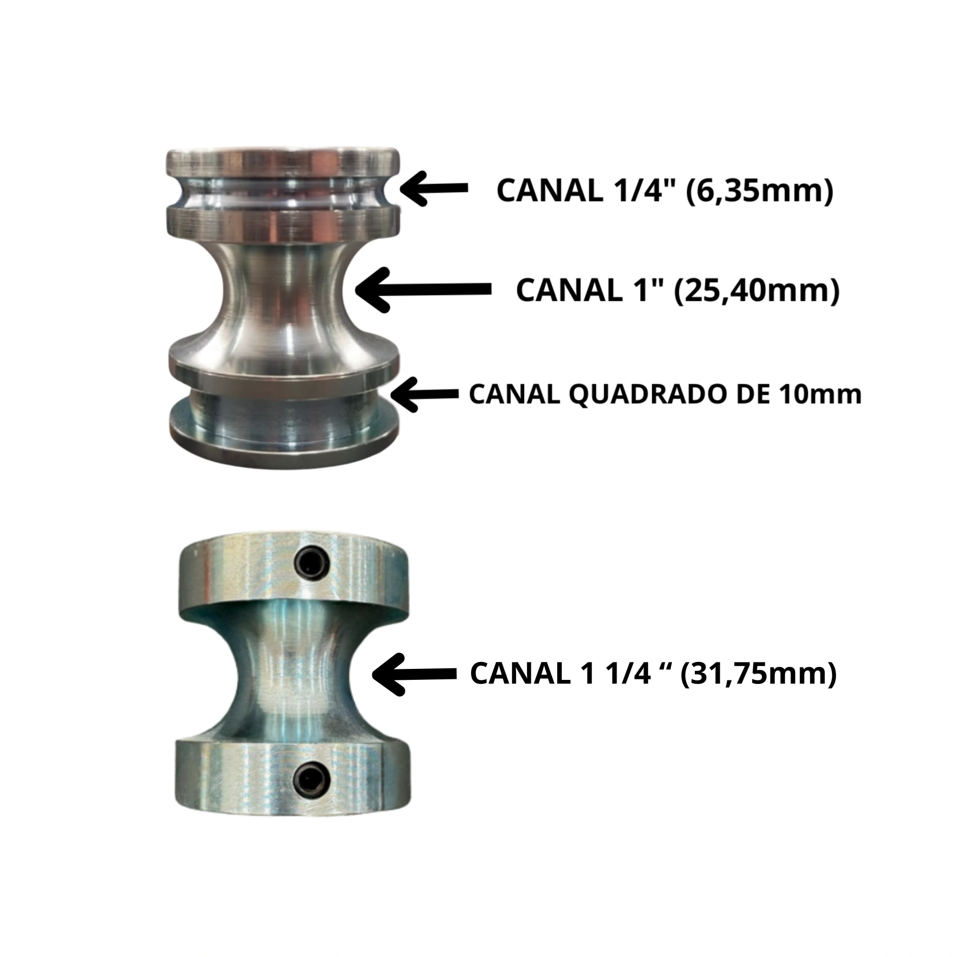 Canal U Conjugado — Medida 1/4″ (6,35mm) e 1″ (25,40mm) e Quadrado 10mm