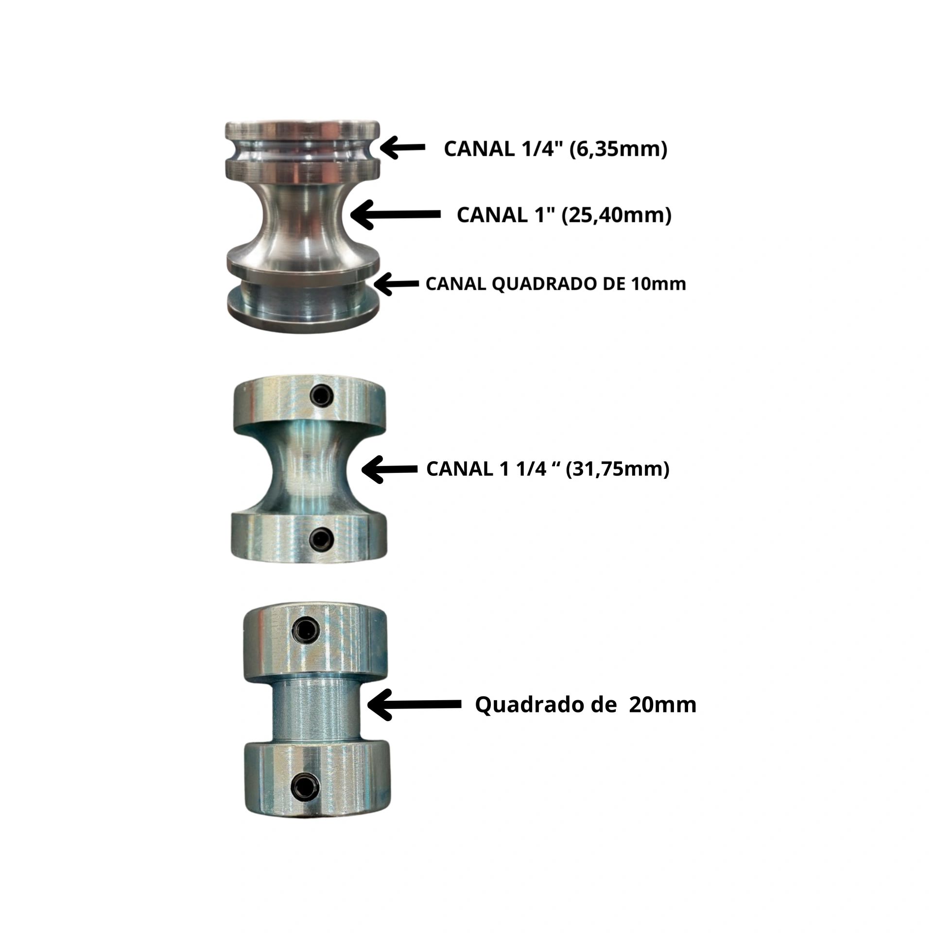Canal U Conjugado — Medida 1/4″ (6,35mm) e 1″ (25,40mm) e Quadrado de 10mm