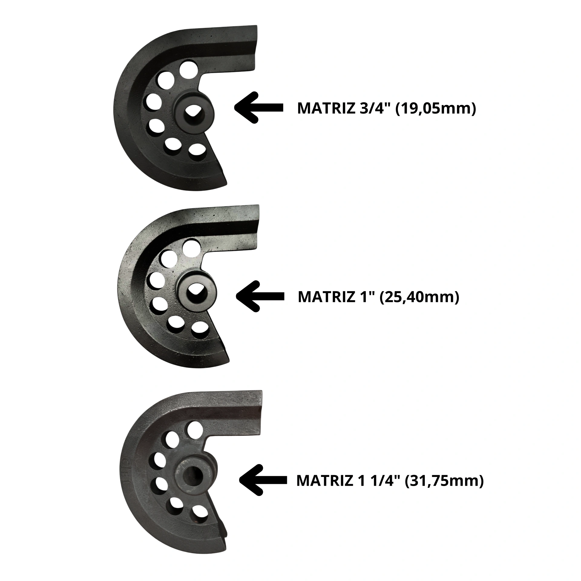 –Matriz: Em aço (SAE1045) 3/4″ (19,05mm) | 1″ (25,40mm) | 1 1/4″ (31,75mm)
