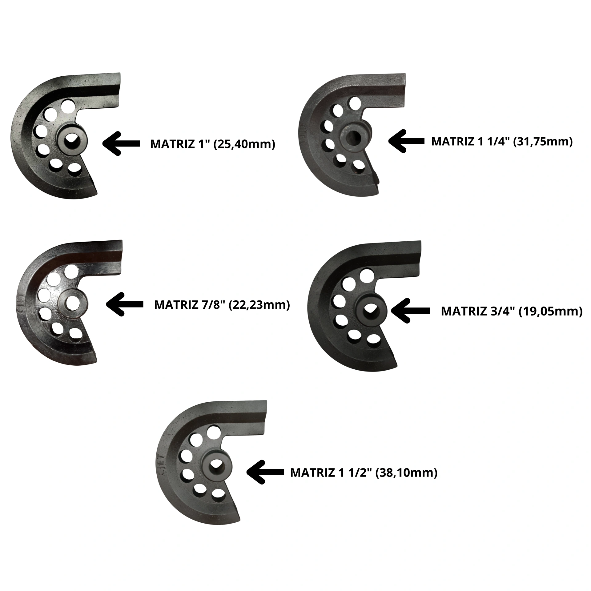 –Matriz: Em aço (SAE1045) 1″ (25,40mm) | 7/8″ (22,23mm) | 1 1/4″ (31,75mm) | 3/4″ (19,05mm) | 1 1/2″ (38,10mm)