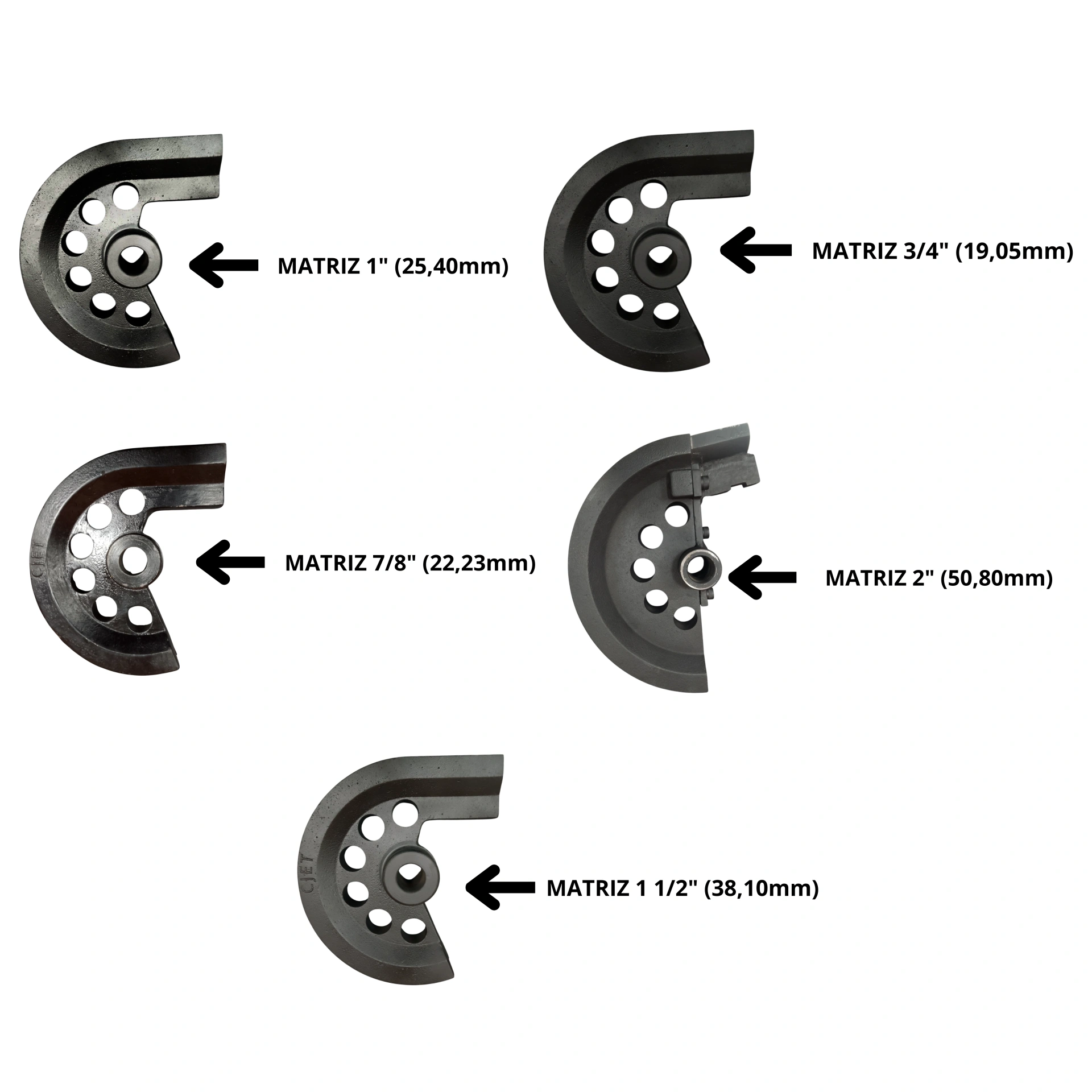–Matriz: Em aço (SAE1045) 1″ (25,40mm) | 7/8″ (22,23mm) | 3/4″ (19,05mm) | 2″ (50,80mm) | 1 1/2″ (38,10mm)