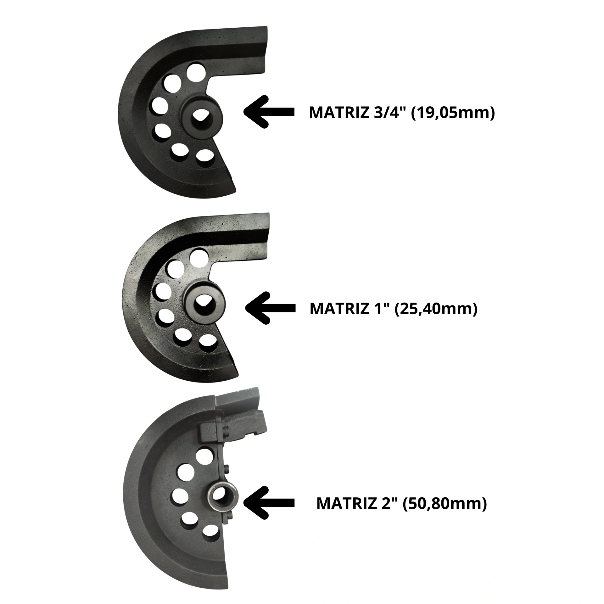 –Matriz: Em aço (SAE1045) 3/4″ (19,05mm) | 1″ (25,40mm) | 2″ (50,80mm)