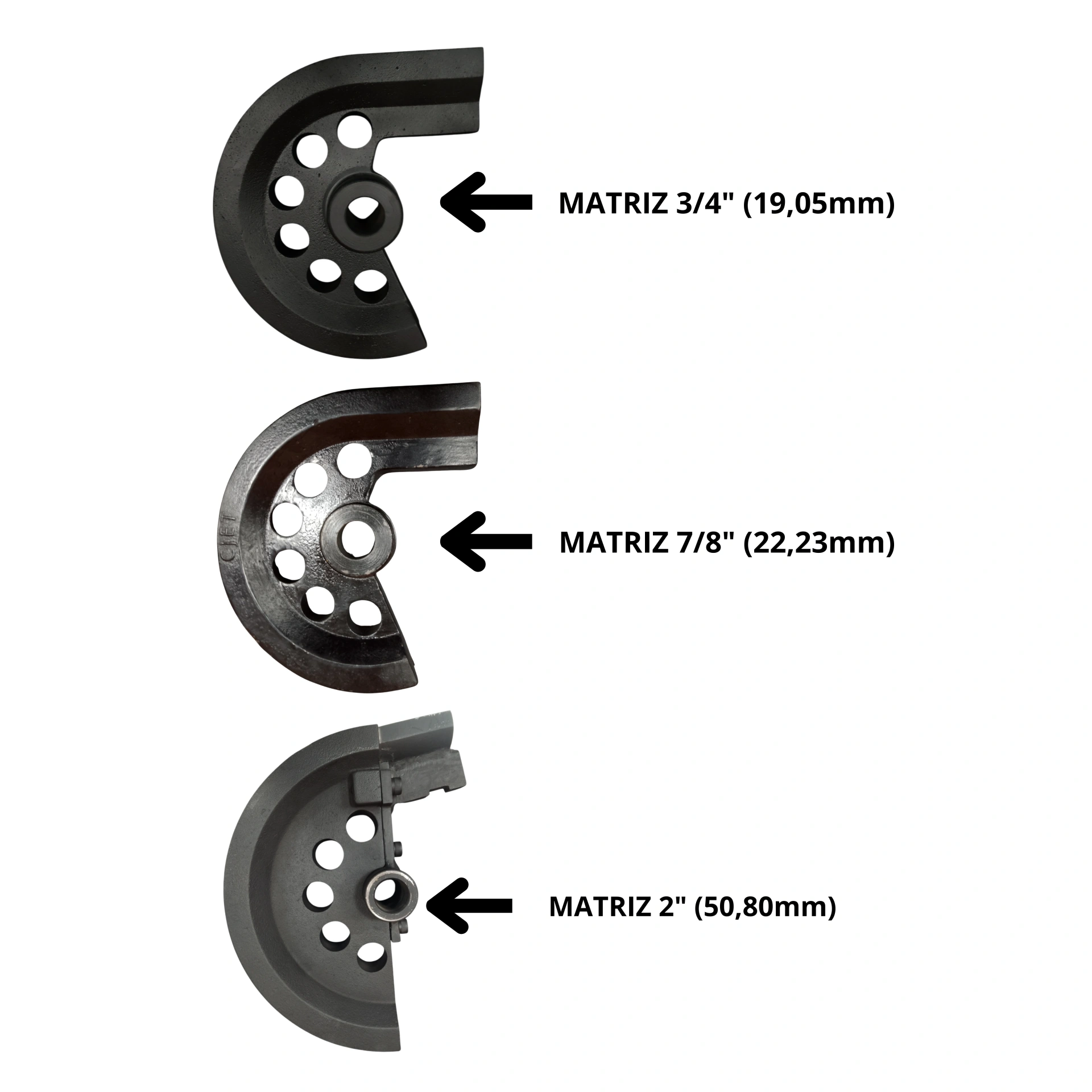 –Matriz: Em aço (SAE1045) 3/4″ (19,05mm) | 7/8″ (22,23mm) | 2″ (50,80mm)