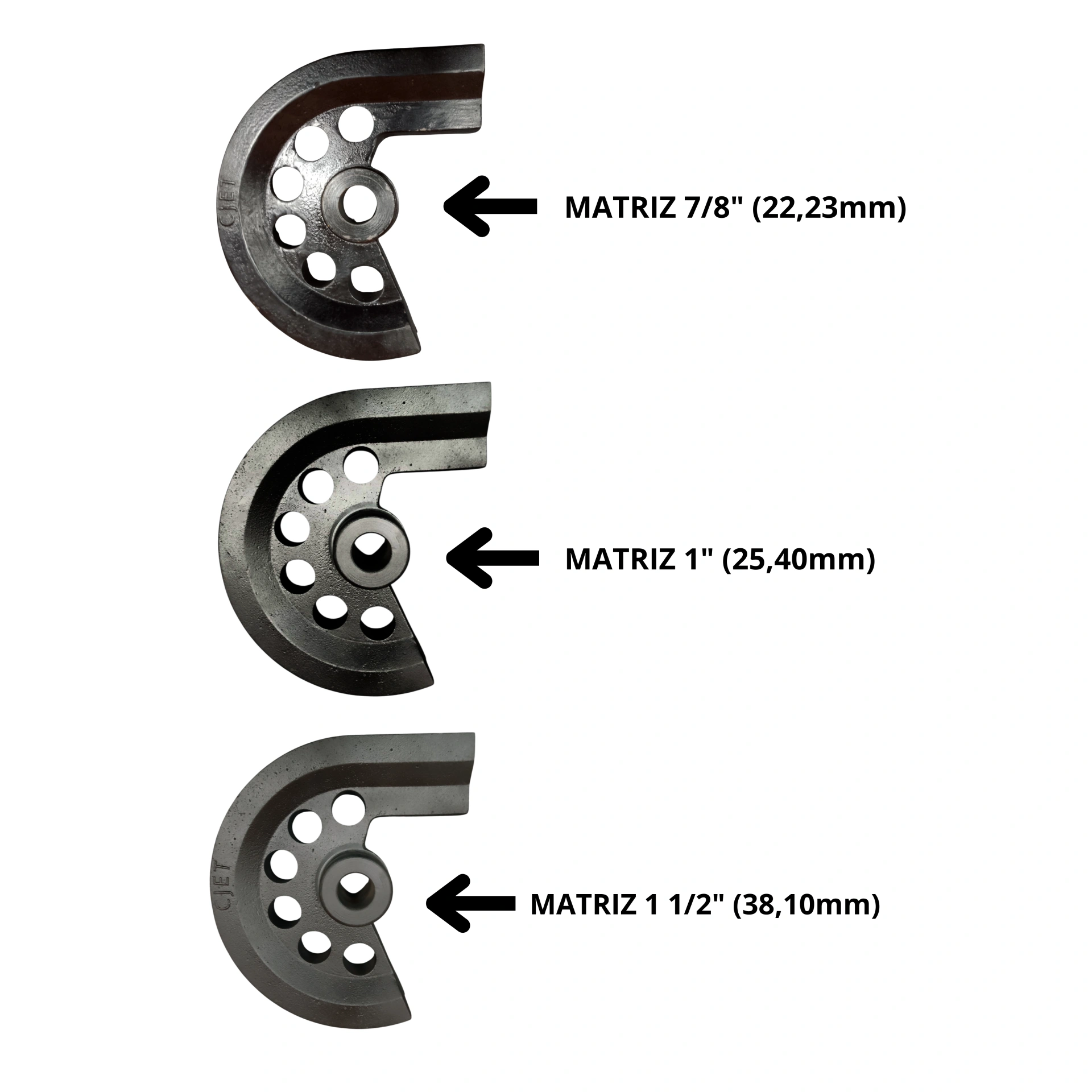 –Matriz: Em aço (SAE1045) 7/8″ (22,23mm) | 1″ (25,40mm) | 1 1/2″ (38,10mm)