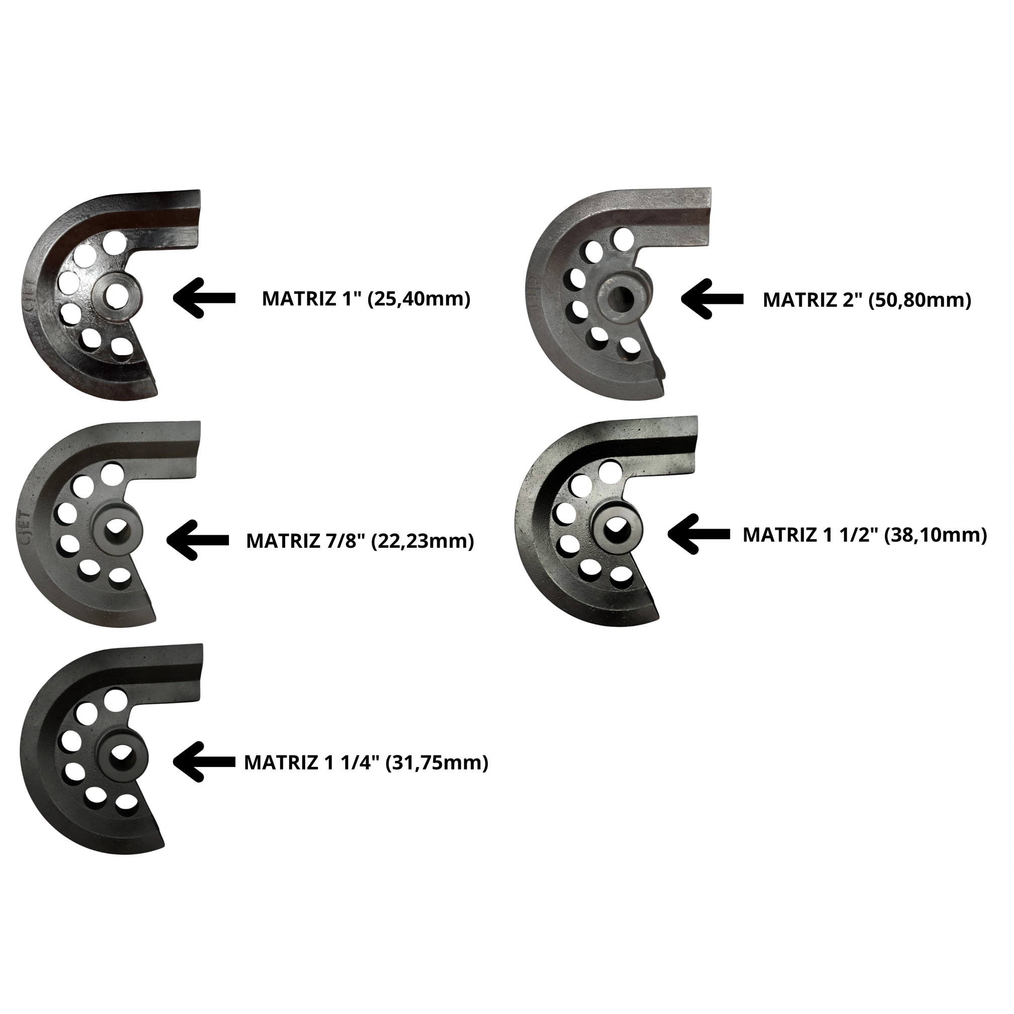–Matriz: Em aço (SAE1045) 1″ (25,40mm) | 7/8″ (22,23mm) | 1 1/4″ (31,75mm) | 2″ (50,80mm) | 1 1/2″ (38,10mm)